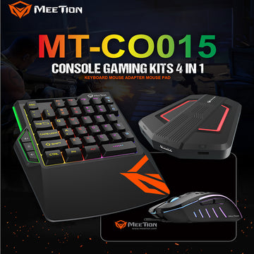 Meetion MT-C0015 4-in-1 Console Gaming Kit | RGB One-Handed Gaming Keyboard, Gaming Mouse, Adapter & Mouse Pad for PS, Xbox & PC
