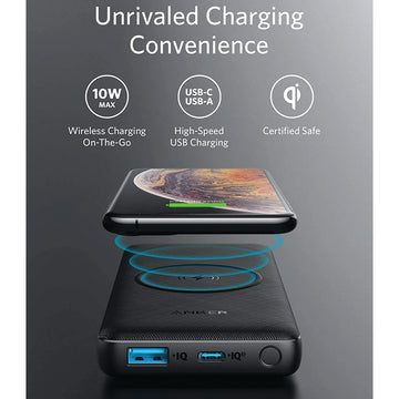 Anker Wireless Power Bank 10000mAh – Qi Wireless Charging Portable Charger with USB-C & USB-A Fast Charging (1 Year Warranty)