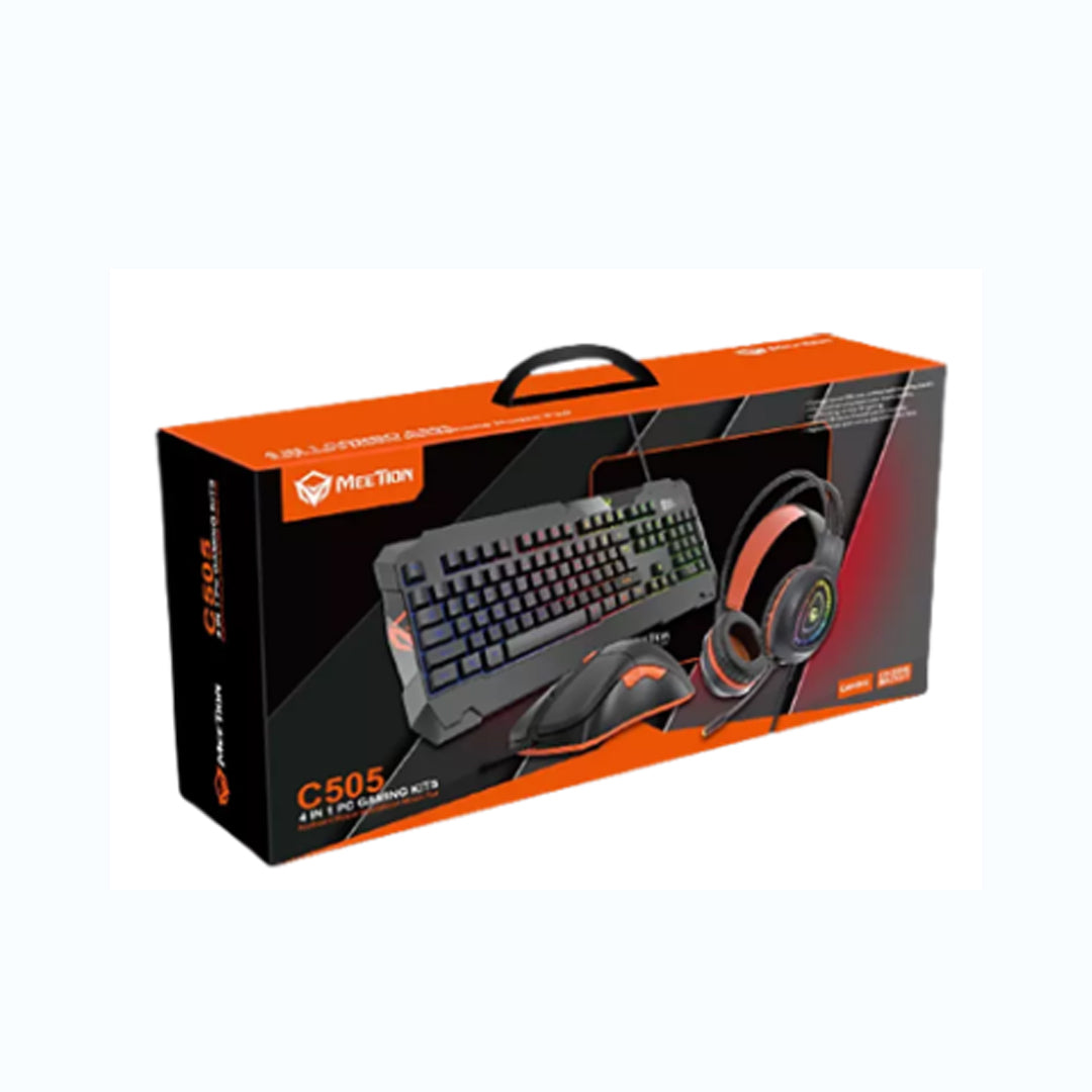 مجموعة ألعاب ميتيون C505 4 في 1 RGB | لوحة مفاتيح بإضاءة خلفية، ماوس ألعاب، سماعة رأس RGB مع ميكروفون ولوحة ماوس – مجموعة ألعاب متكاملة لأجهزة الكمبيوتر المكتبية والمحمولة