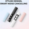 The compact charging case features a stylish lipstick-style design, making it easy to carry in your pocket or bag.